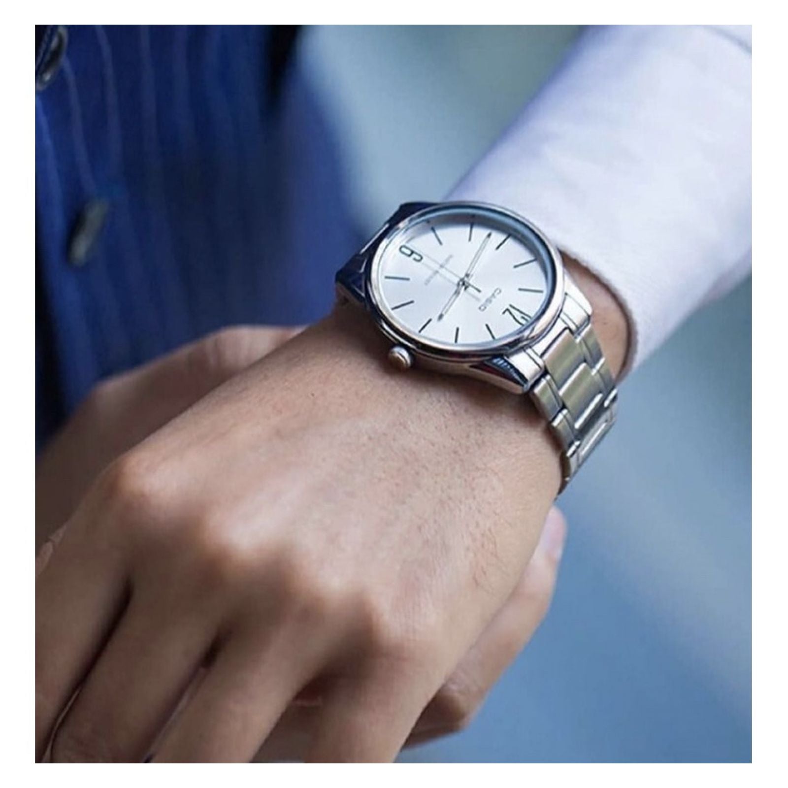 Reloj casio mtp-v005d-7b mtp-v005d-7b para hombre, tamaño de la caja 44 mm de acero inoxidable, tamaño del pulso 220 mm de acero inoxidable, color plateado, pulso de 220 mm, resistencia al agua hasta 50 metros