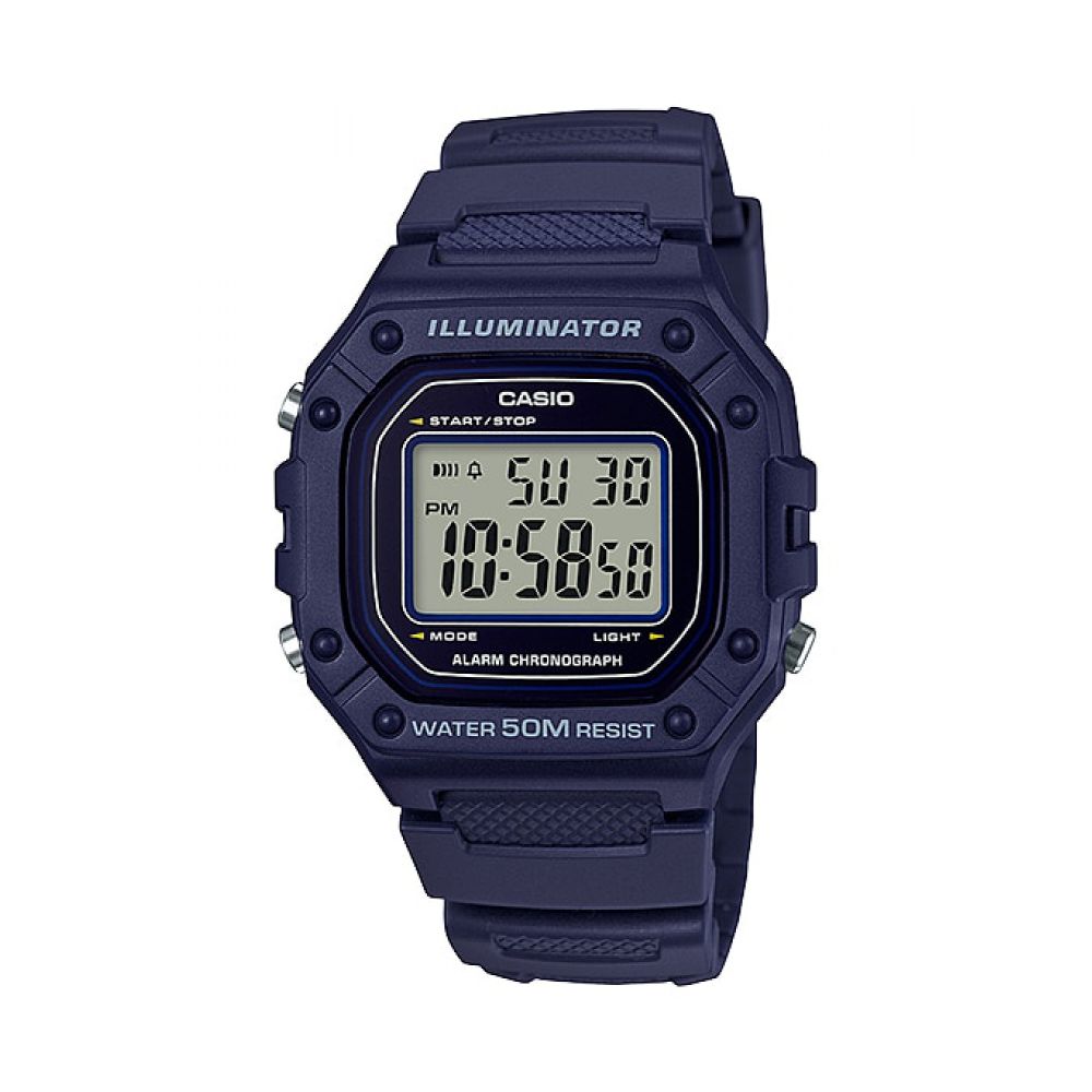 Reloj casio w_218h_2av para hombre, tamaño de la caja 444 mm de resina, tamaño del pulso 220 mm de resina, color azul, pulso de 220 mm, resistencia al agua hasta 50 metros