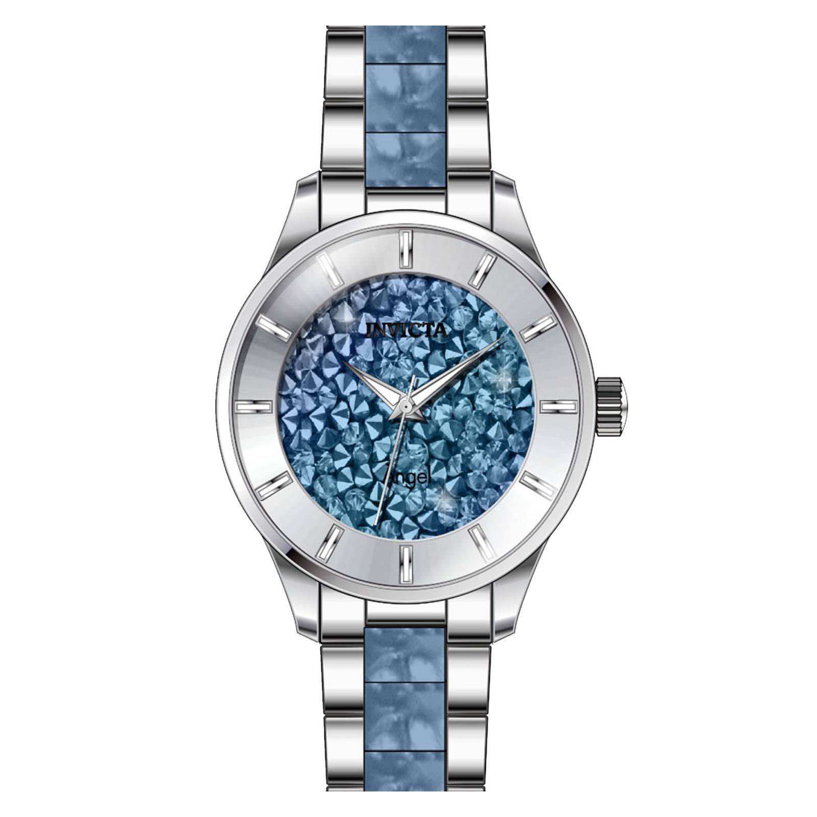 Reloj invicta 24665 angel para mujer, tamaño de la caja 40 mm de acero inoxidable, tamaño del pulso 175 mm de acero inoxidable, color acero, azul claro, pulso de 175 mm, resistencia al agua hasta 100 metros