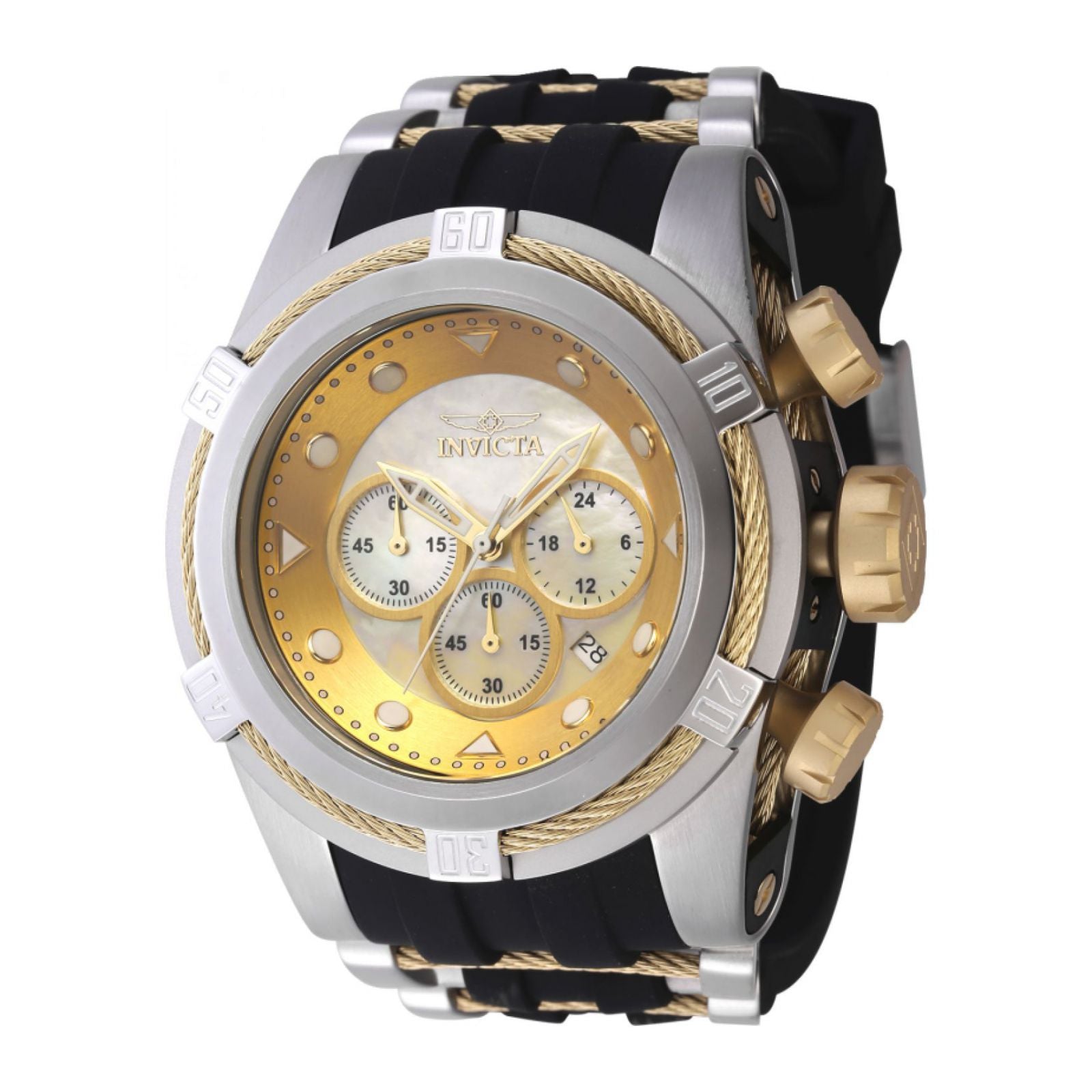 Reloj invicta 46468 bolt para hombres, tamaño de la caja 53.0 mm de plástico / acero inoxidable, tamaño del pulso 210 mm de silicona, acero inoxidable, color negro, oro, acero, pulso de 210 mm, resistencia al agua hasta 100 metros