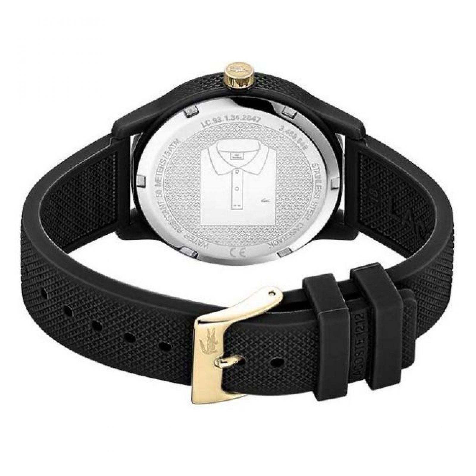 Reloj lacoste 2001064 lacoste.12.12 para mujer, tamaño de la caja 36 mm de resina, tamaño del pulso 178 mm de silicona, color negro, pulso de 178 mm, resistencia al agua hasta 50 metros