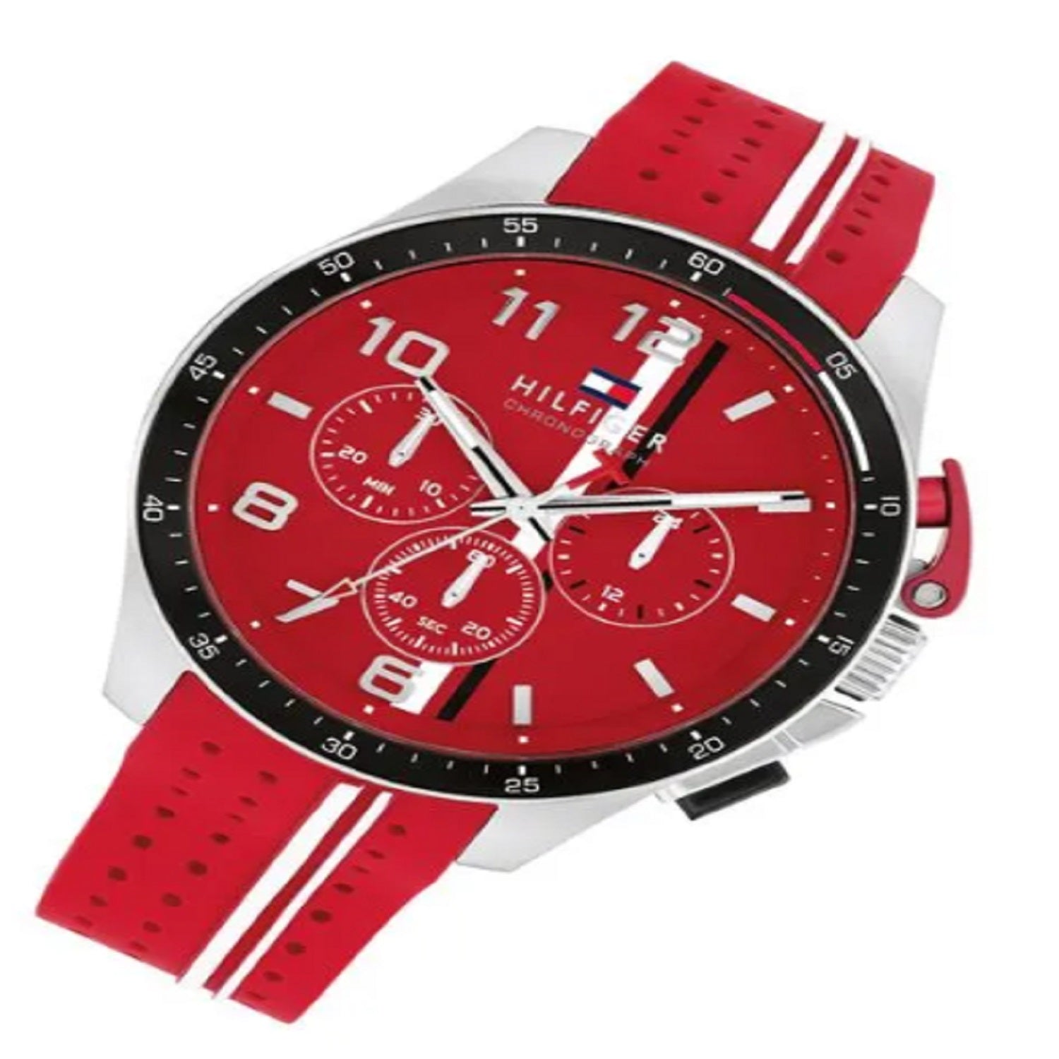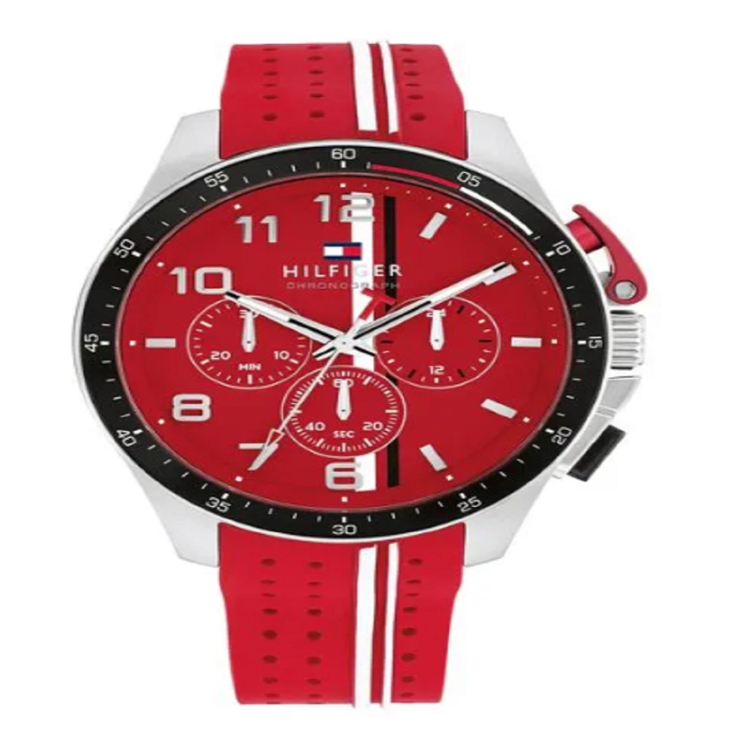 Reloj tommy hilfiger 1792170 bank para hombre, tamaño de la caja 44 mm de acero inoxidable, tamaño del pulso 220 mm de silicona, color rojo, pulso de 220 mm, resistencia al agua hasta 50 metros