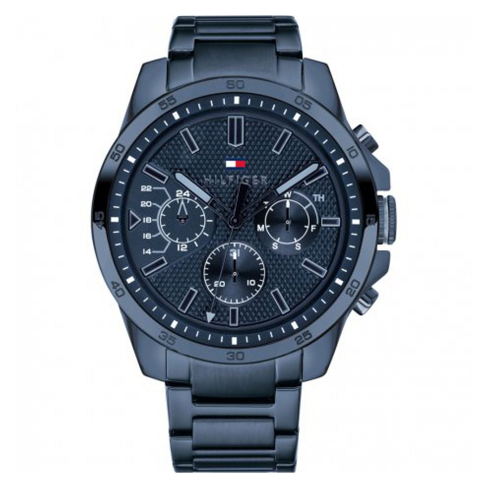 - ShortDescription: Este reloj marca Tommy Hilfiger tiene una caja de acero inoxidable con un diámetro de 46 mm y cuenta con una correa de metal.